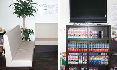 キッズスペース:おもちゃ、DVDなど置いてありますので、小さなお子さま連れの方も気楽に来てください。